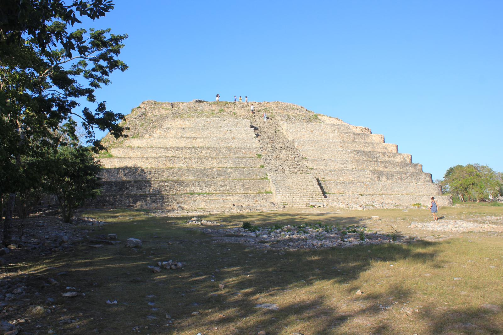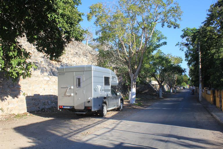Nous sommes samedi soir, le zocalo ne semble pas être le meilleur endroit pour dormir. Nous tentons notre chance près du Parque de los Remedios, celui-ci est tout aussi bruyant. Nous nous installons finalement le long de la Calle 26B au pied de la pyramide Kinich Kak Moo.