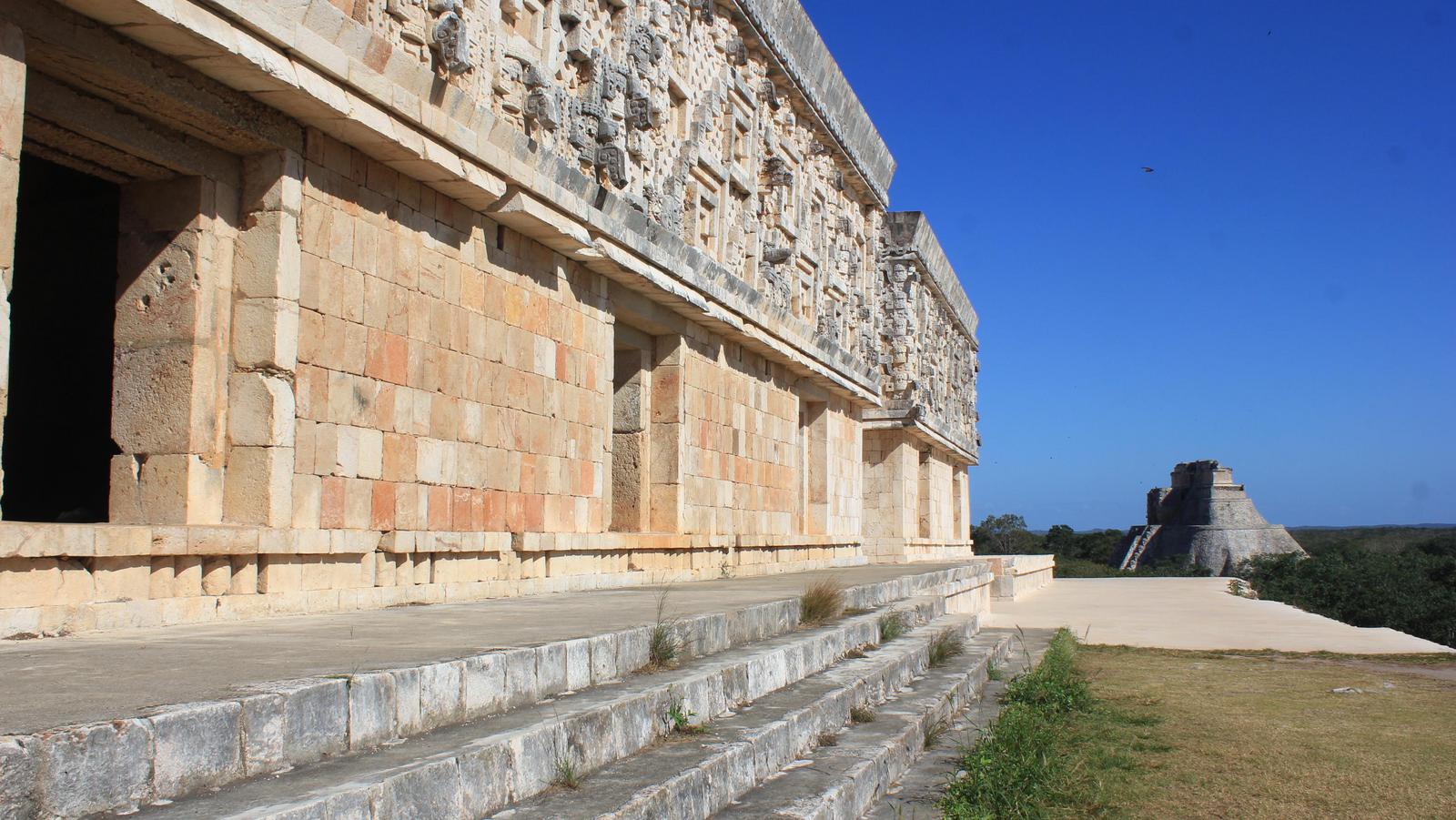 Ce palais date du Xème siècle. Il est bâti sur une large plateforme qui domine tout le site. Sa longue façade mesure près de 100m, il est très élégant et est considéré comme un des chefs d'oeuvre de l'architecture maya. Sur la magnifique partie supérieure on retrouve tous les éléments du style Puuc. En contrebas du palais, nous pouvons voir la Maison des Tortues et le Trône du Jaguar.
