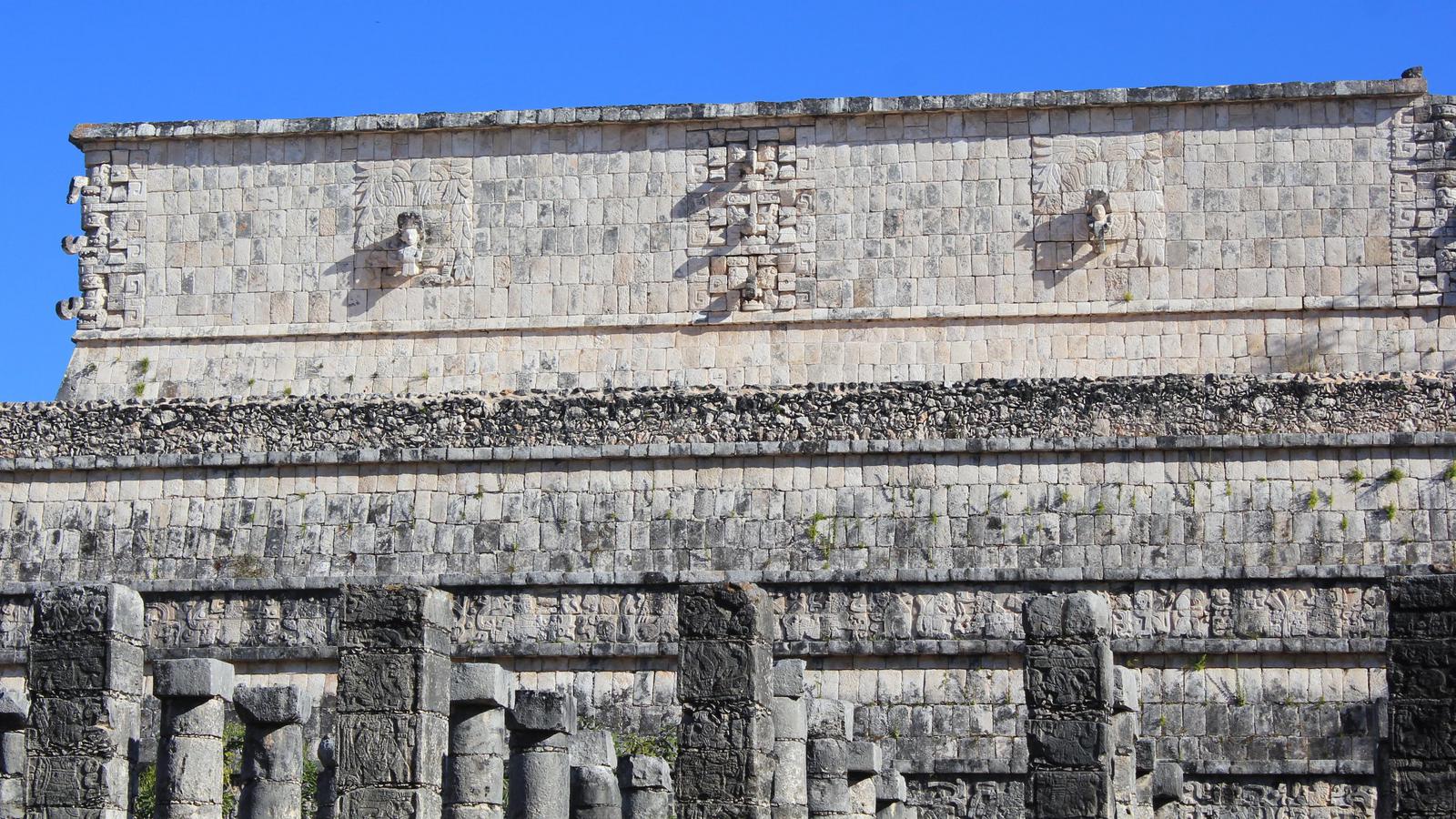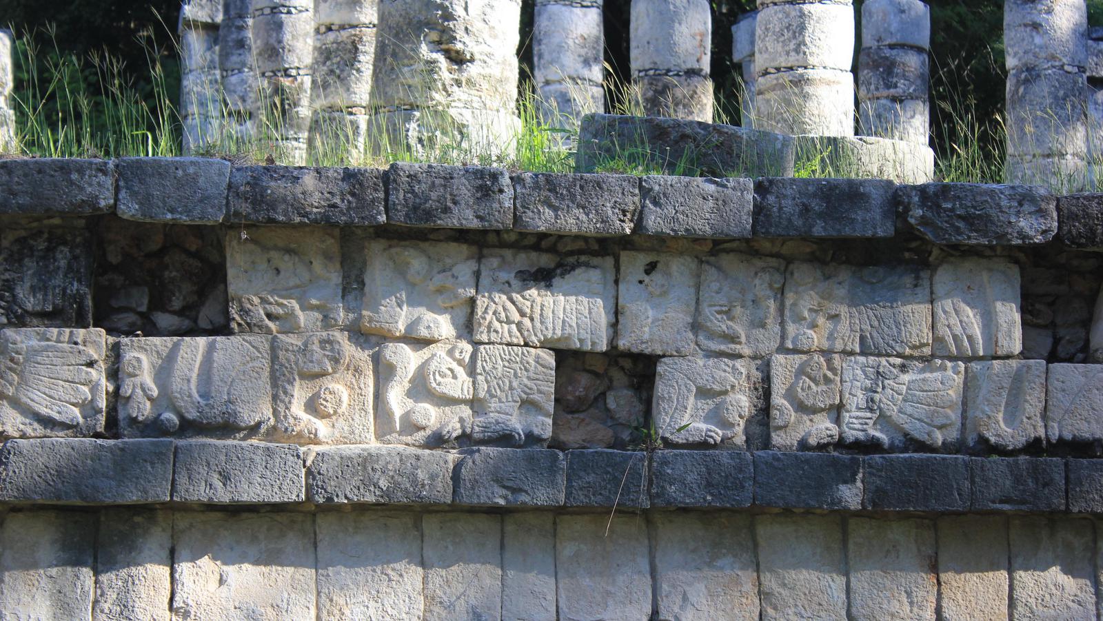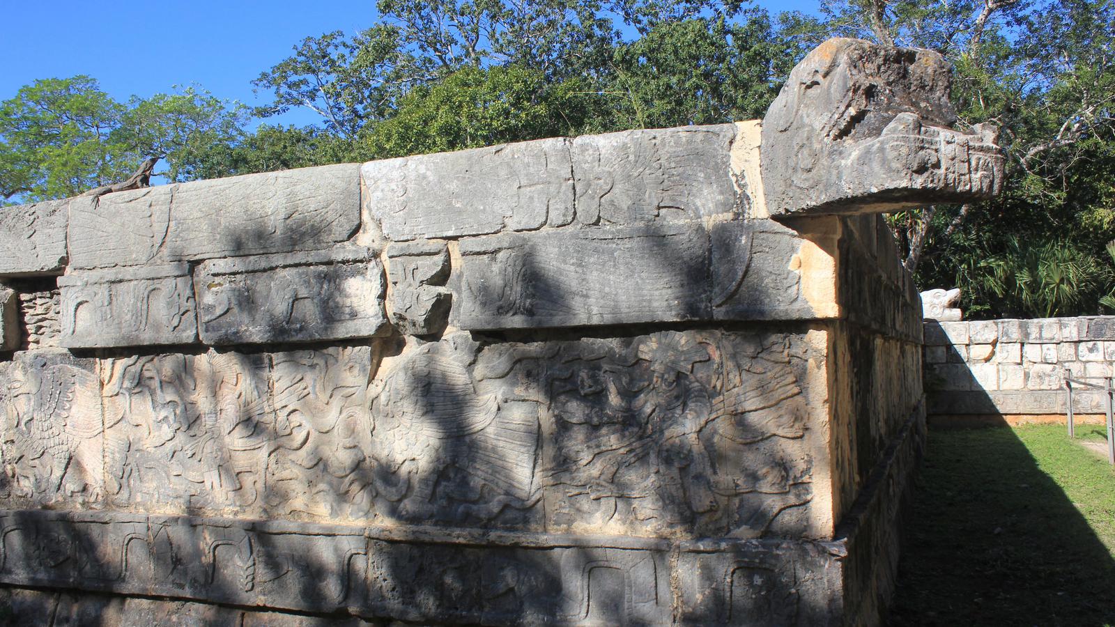 En revenant sur l'avant de la pyramide, nous accédons au Temple des Jaguars et au Jeu de Pelote. Celui-ci est plus grand et mieux conservé que celui d'Uxmal.