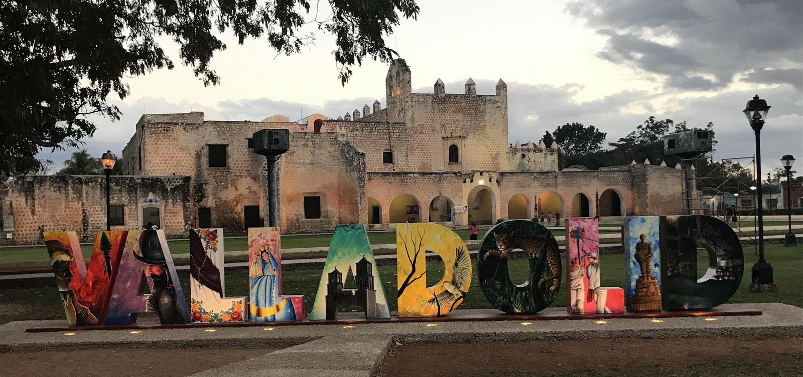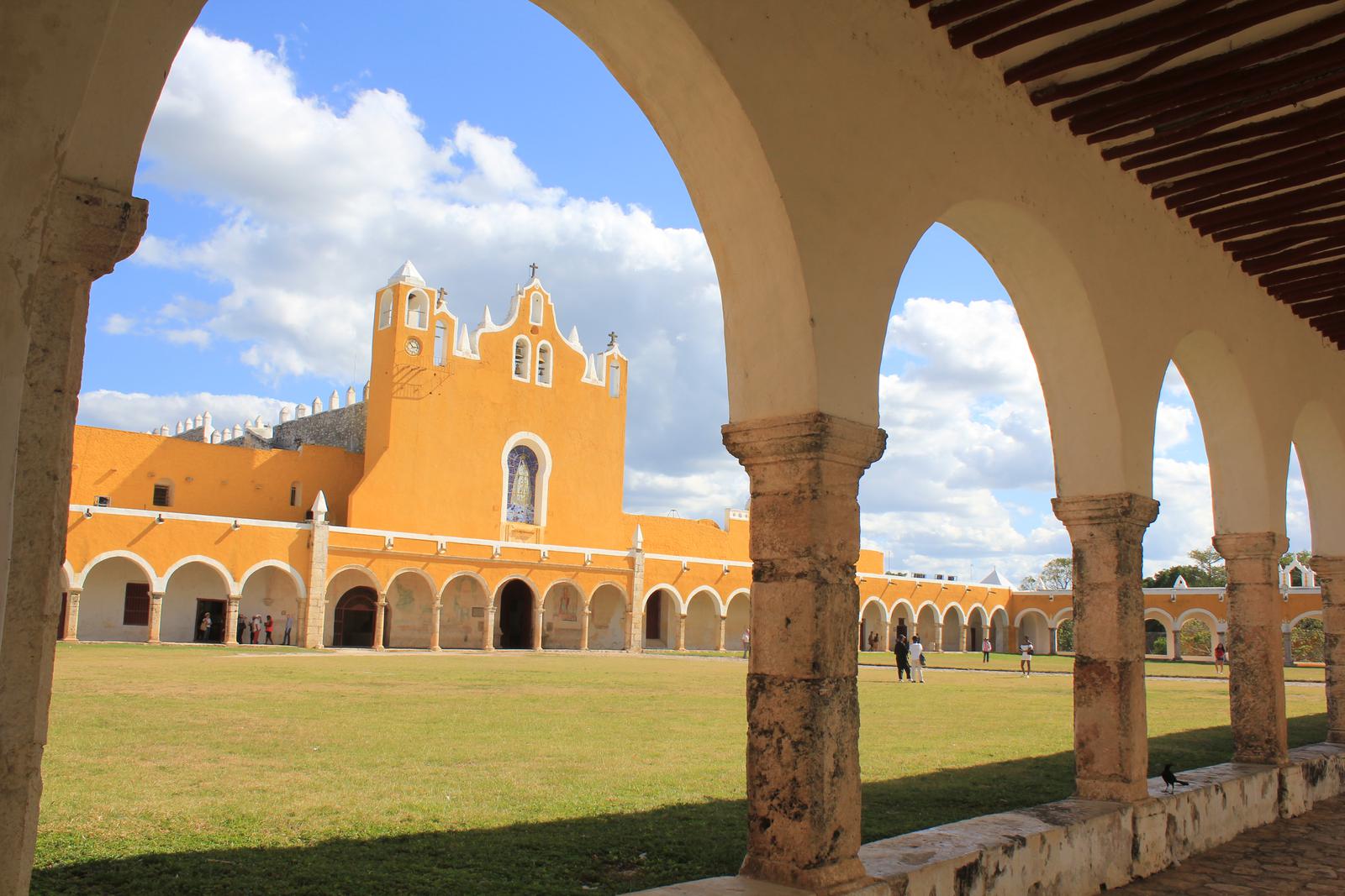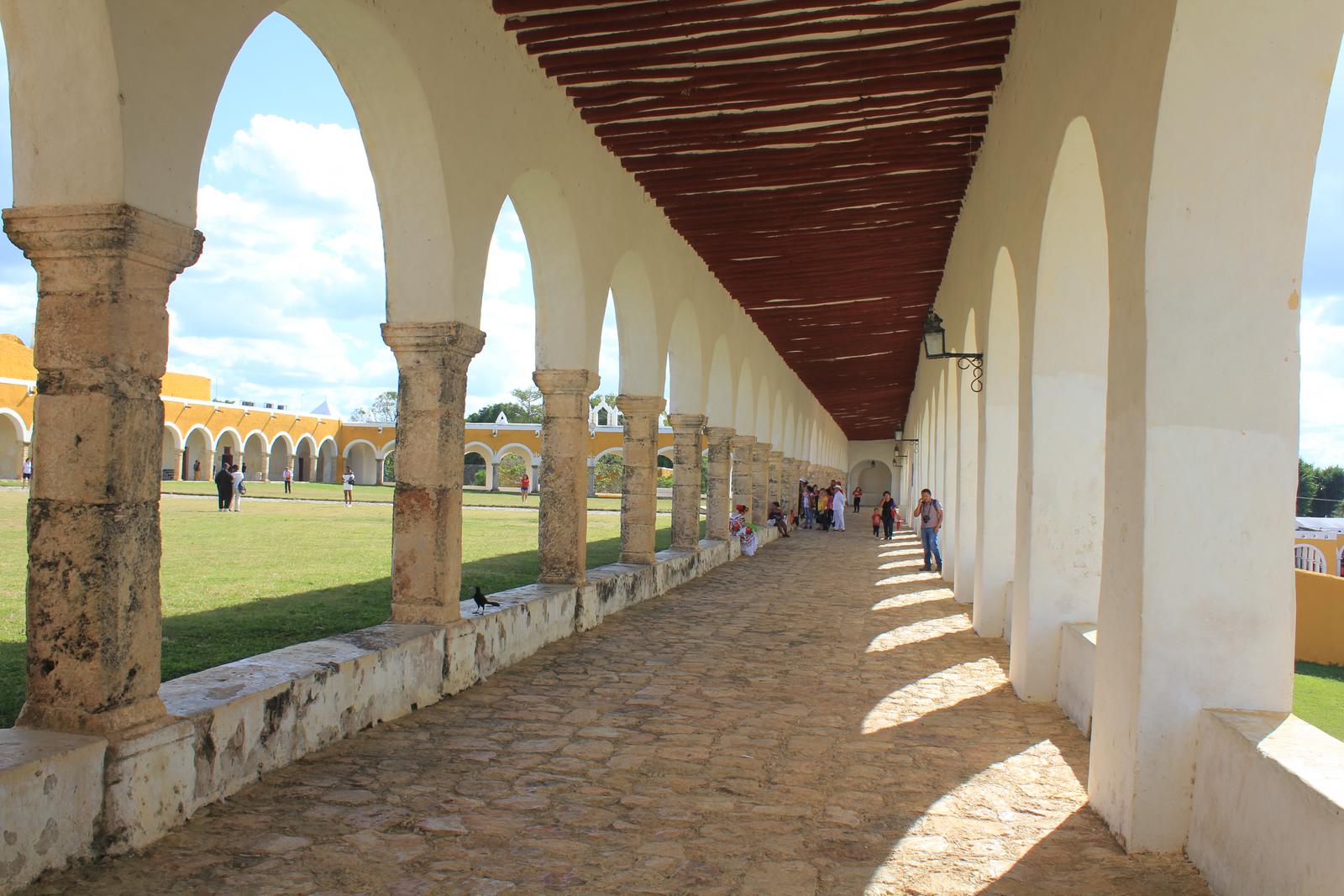 Nous arrivons sur la place du couvent. C'est une vraie forteresse, dans un très bel état de conservation. ii a été construit en 1552 par les franciscains, et c'est d'ici que débuta l'évangélisation de la péninsule du Yucatan.